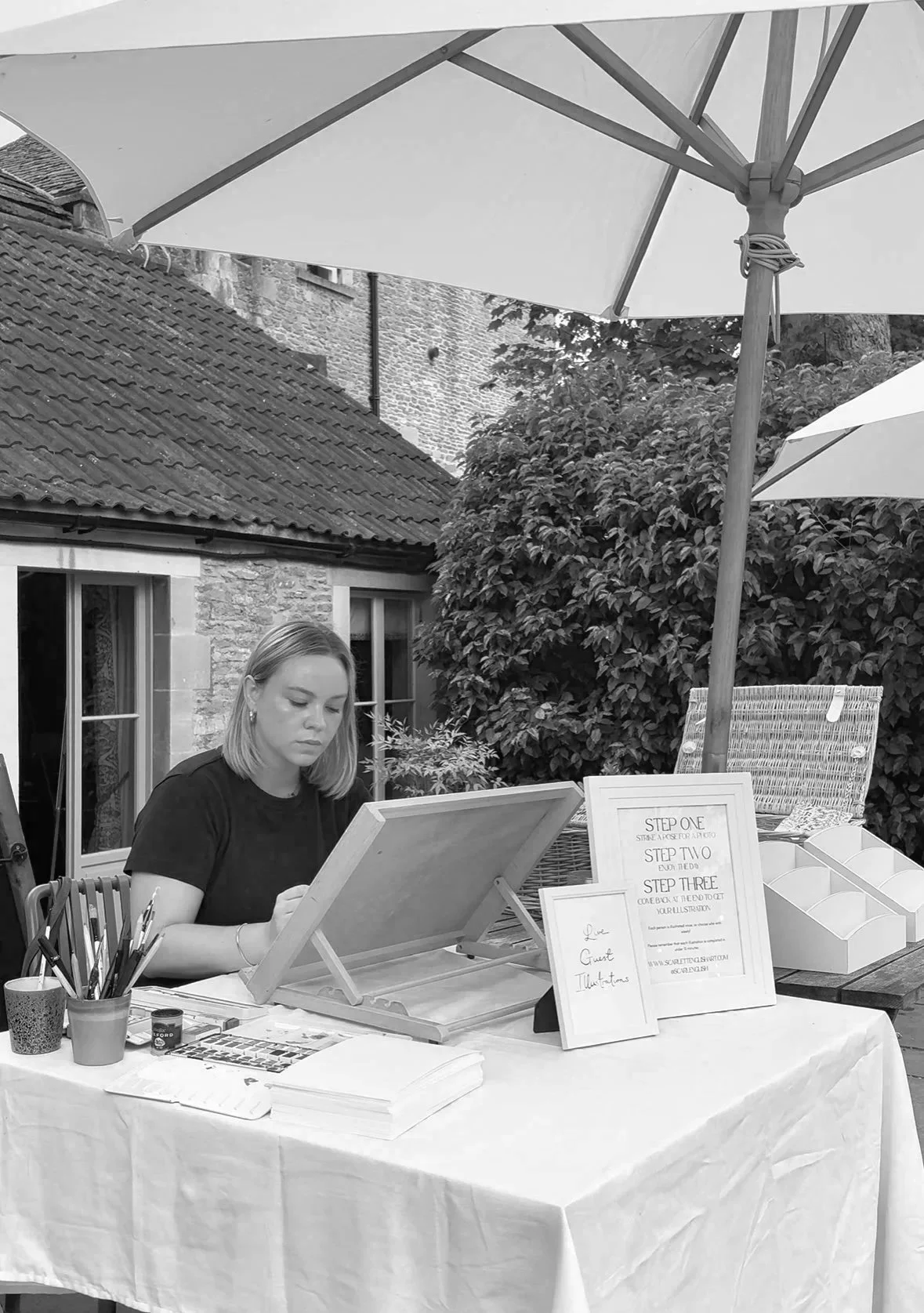 On the day, I’m relaxed and discrete, moving with the natural flow of things and blending into the background - almost like one of your guests with some paints.